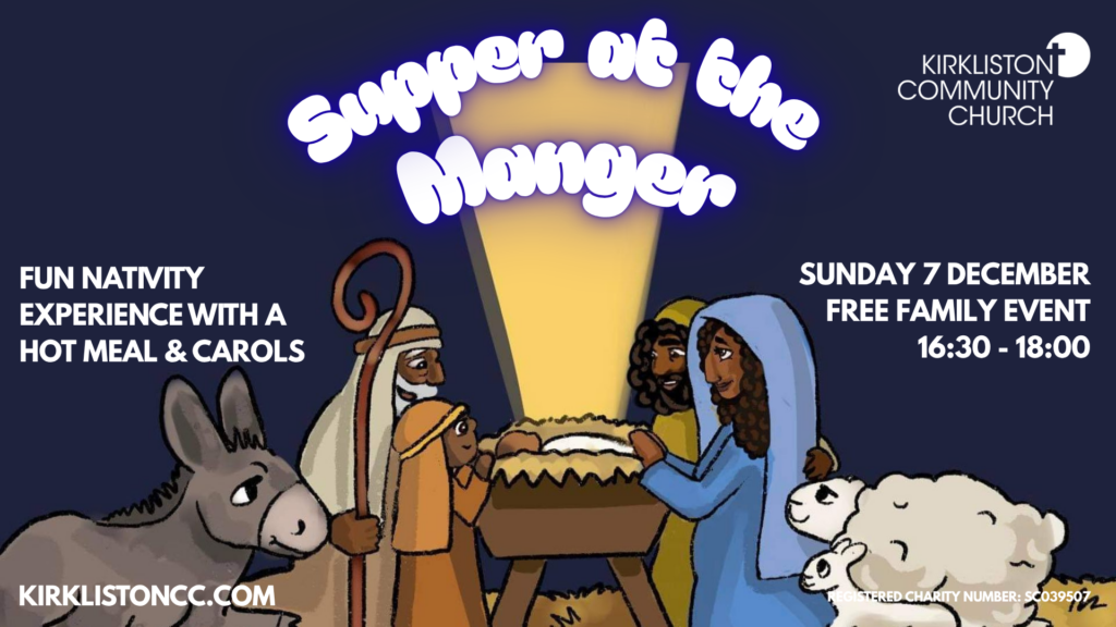 Come along to ‘Supper at the Manger’ – an interactive telling of the first Christmas. You will hear from Angels, Mary & Joseph, Shepherds, Wise Men and from the devious King Herod as you search for the manger! There will also be crafts, carol singing and a hot meal.